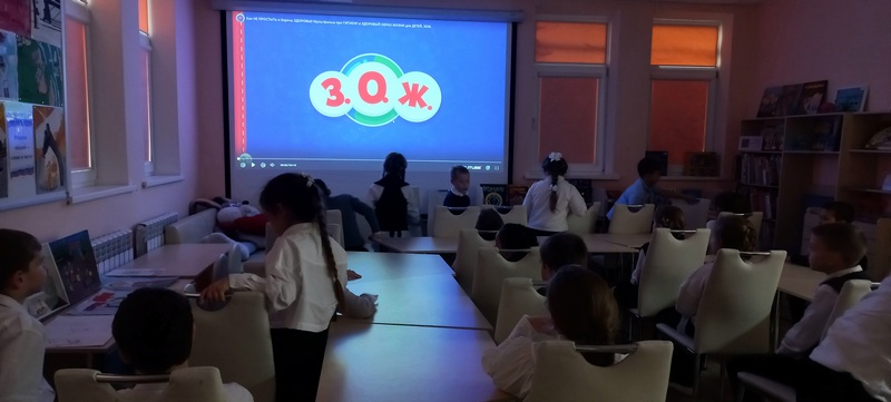 Библиотекарь рассказала о понятии и значении здорового образа жизни для организма человека, о правильном питании, закаливании, о полезных и вредных привычках. Провела небольшой опрос: что такое З.О.Ж, занимаются ли дети спортом, любят ли иногда баловать себя вредной едой, знают ли, что для организма важен режим сна, водный баланс и т. д. Для закрепления полученных знаний ребята посмотрели познавательный мультфильм «З.О.Ж.».