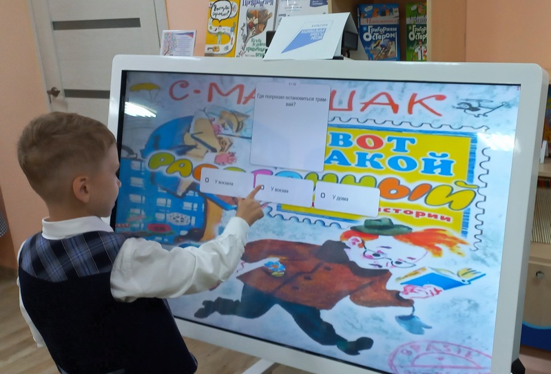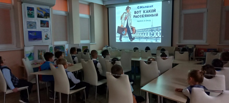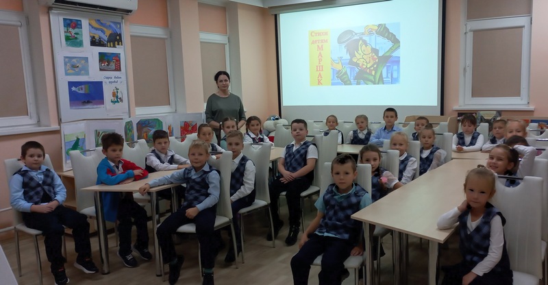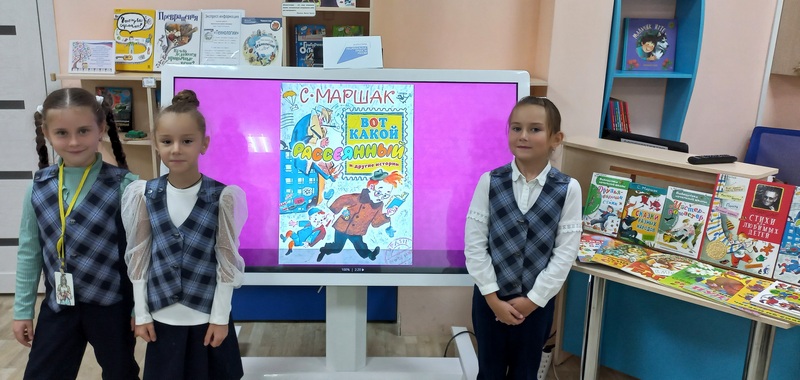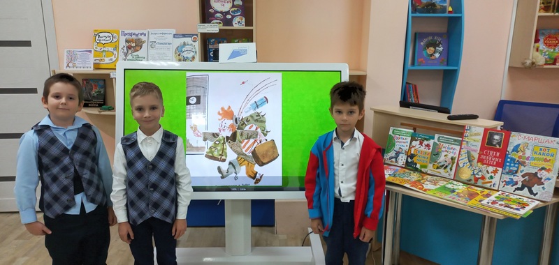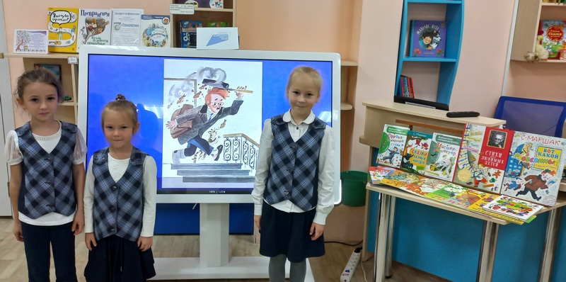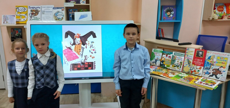 Библиотекарь рассказала о жизни и творчестве Самуила Маршака. Для закрепления знаний дети посмотрели видеоролик о биографии писателя.