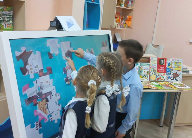 А сбор онлайн-пазлов на скорость вызвал полный восторг, ведь ребята впервые попробовали играть на нашей интерактивной панели.