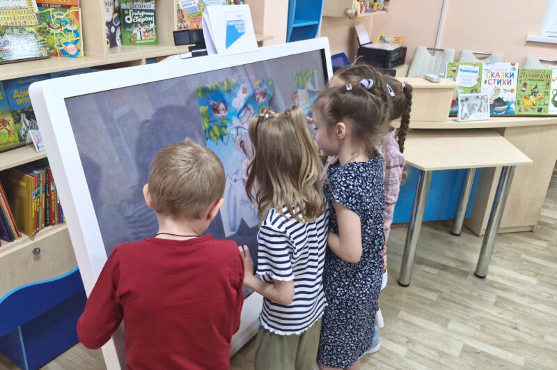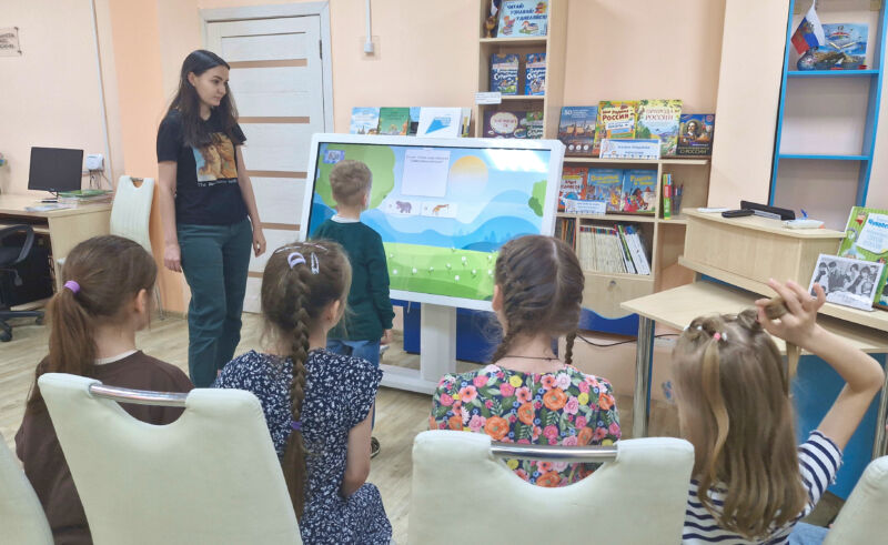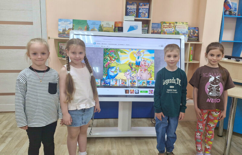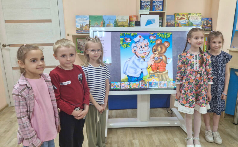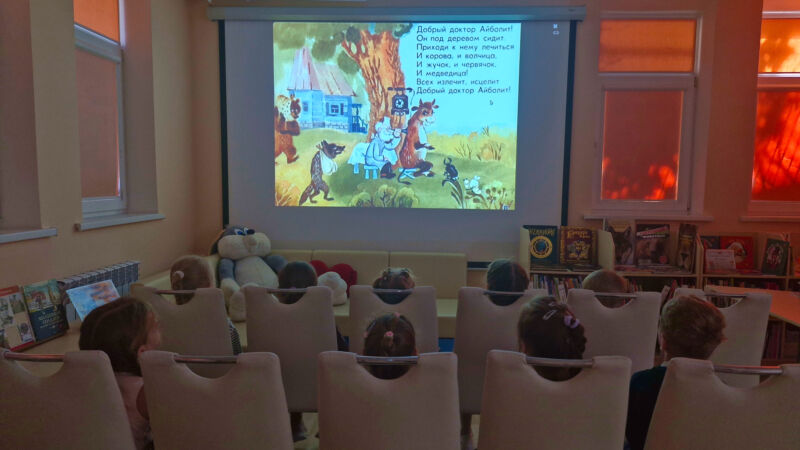 Библиотекарь прочитала ребятам диафильм по сказке «Айболит», которую Чуковский написал для своей младшей дочери Мурочки.