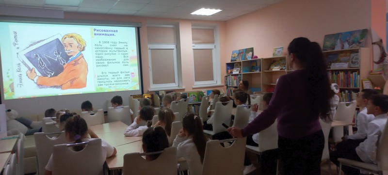 28 октября отмечается Международный день анимации. Этому событию в модельной детской библиотеке-филиале № 9 в творческом пространстве «Читаем, творим, играем» состоялся мульт-час «Нарисованная Вселенная». Его участниками стали ученики 3-А класса 30 школы (классный руководитель Касьян Ю. А.).
