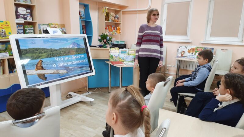 В нашей библиотеке для юных читателей из 2-Б и 3-А классов школы № 33 (классные руководители: Новикова Т. В. и Дукина Е. П.) прошла эко-игра «Путешествие в заповедное царство», приуроченная ко Дню заповедников и национальных парков России. Ребята познакомились с книгой Ильи Кочергина «Заповедники. Дом для дикой природы», из которой узнали, чем различаются заповедники, национальные парки и заказники, какой заповедник был создан первым, а какой считается самым горячим и множество других интересных фактов об уголках дикой природы, находящихся на территории нашей страны. Далее дети посмотрели видеоролик о некоторых российских заповедниках, каждый из которых уникален по-своему. Так, например, ребята узнали, что самым крупным заповедником является Большой Арктический, а самым северным — остров Врангеля, в Кроноцком есть Долина гейзеров и 8 действующих вулканов, а Телецкое озеро в Алтайском заповеднике — второе по объёму (после Байкала) хранилище пресной воды. В завершение встречи маленькие читатели успешно ответили на вопросы интерактивной викторины «Что вы знаете о заповедниках?» Благодарим участников мероприятий за проявленный интерес и любовь к родной природе!