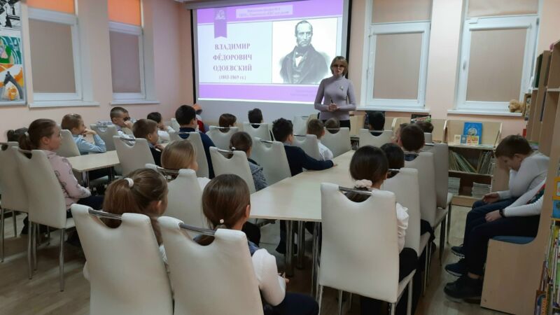 Вначале ребята познакомились с биографией Владимира Фёдоровича Одоевского — русского писателя и музыковеда, а затем посмотрели диафильм по его сказке «Мороз Иванович».