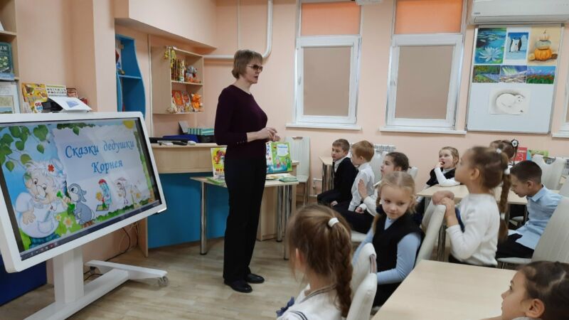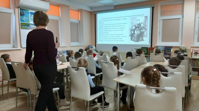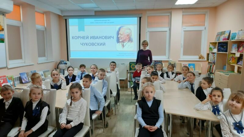 Маленькие читатели познакомились с биографией литератора, узнали, как у него появился псевдоним, когда была создана его первая сказка «Крокодил» и множество других интересных фактов из жизни Корнея Ивановича.