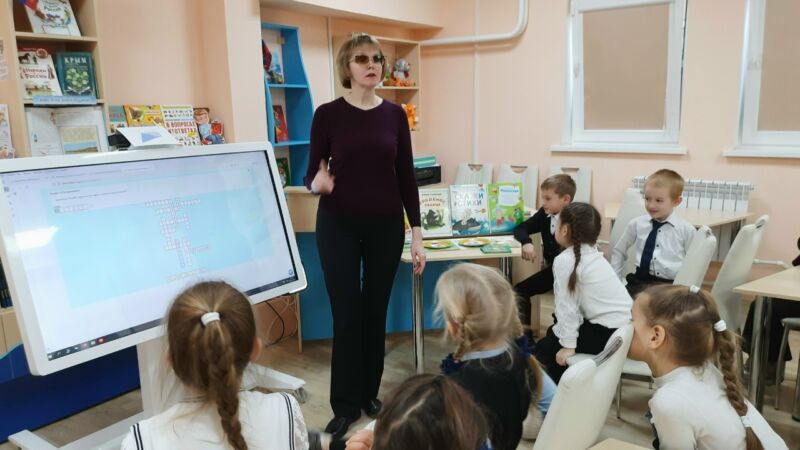 В продолжение встречи дети показали великолепное знание творчества писателя. В интерактивной игре они угадали сказки по одному открытому фрагменту. С таким же успехом первоклассники разгадали кроссворд по произведениям К. Чуковского.