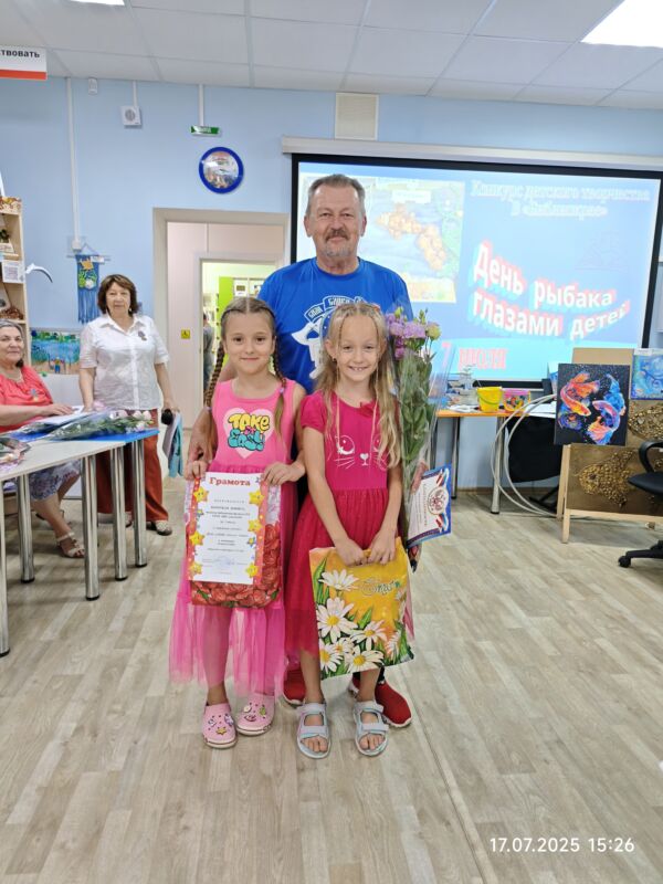 В финале всех участников конкурса детского творчества «День рыбака глазами детей» ждал хороший улов — церемония награждения, которую провели Председатель жюри, общественный деятель, поэт и композитор, исполнитель бардовской песни и Заслуженный артист Республики Крым Курочкин Сергей Михайлович, а также организатор Конкурса — представитель Территориальной общественной организации Российского профсоюза работников рыбного хозяйства Калентьева Антонина Владимировна.
