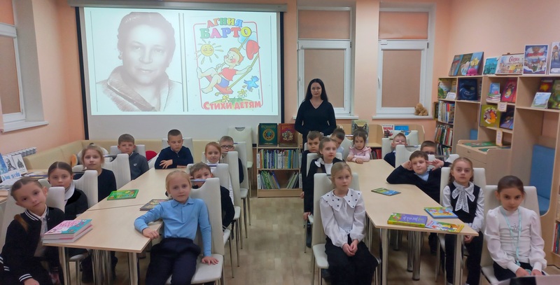 17 февраля исполнилось 120 лет со дня рождения Агнии Львовны Барто, советской детской поэтессы, писательницы, киносценариста, радиоведущей. Этому событию в творческом пространстве «Читаем, творим, играем» модельной детской библиотеки-филиала№9 был посвящён литературно-игровой час «В стране весёлого детства», его участниками стали юные читатели 1-А класса 33 школы (классный руководитель Лазарева С. С.) и 1-Б класса 30 школы (классный руководитель Ковальчук Е. Ю.).