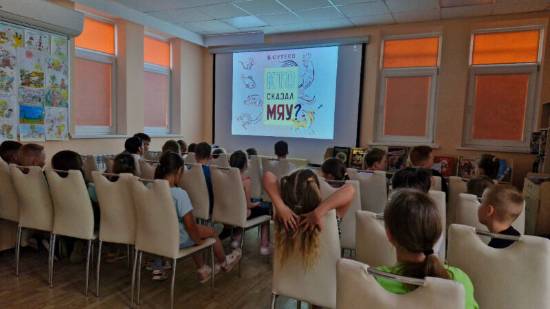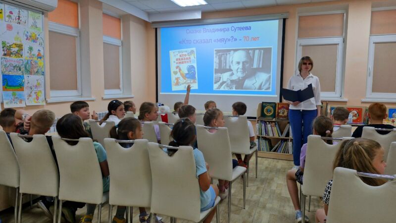 Сегодня в детской библиотеке-филиале № 9 для юных читателей из летнего лагеря школы № 33 прошёл литературный час, посвящённый 70-летию сказки В. Сутеева «Кто сказал «мяу»?»Ребята узнали интересные факты о художнике, мультипликаторе и писателе Владимире Григорьевиче Сутееве, авторе любимых с детства сказочных историй и замечательных иллюстраций. В продолжение встречи дети посмотрели диафильм «Кто сказал «мяу»?» и расставили по порядку картинки из этой сказки. В завершение юные читатели на интерактивной панели собрали пазлы с иллюстрациями Владимира Сутеева. Благодарим ребят за активное участие в мероприятии и интерес к литературному наследию нашей страны!