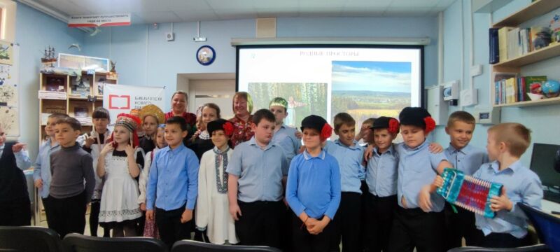 Ольга Алексеевна украсила культурно-просветительское мероприятие русскими частушками, а в завершение встречи простые слова и знакомая мелодия сразу нашли отклик в сердцах ребят, они подхватили песню «Земля родная» — так проявилось наше общее чувство Родины.