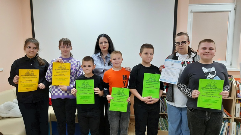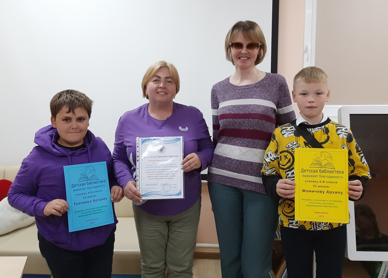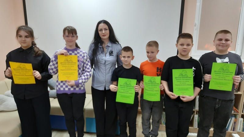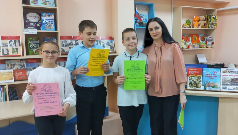 Библиотекарь отметила самых лучших читателей и активных участников массовых мероприятий библиотеки. Ребята были награждены грамотами.