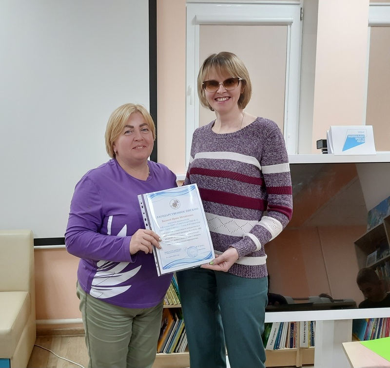 Модельная библиотека-филиал № 9 выразила сердечную благодарность классным руководителям 4-х классов 30 и 33 школ за многолетнее и плодотворное сотрудничество с детской библиотекой, высокий профессионализм, компетентность, целеустремленность, кропотливый труд в воспитании и обучении детей, в проведении совместных мероприятий, направленных на воспитание у детей любви к чтению и книгам, привитию любви к родному краю.