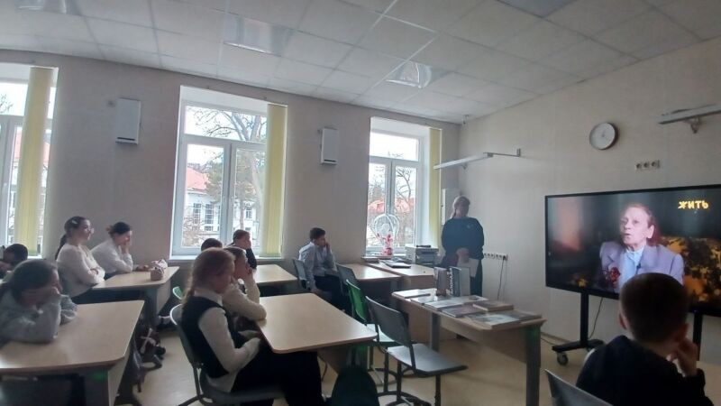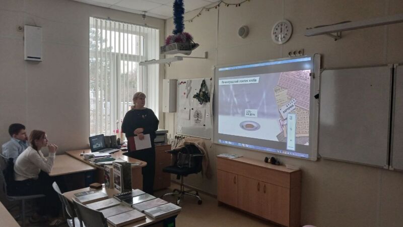 В рамках мероприятия были показаны фрагменты документальных фильмов, помогающие прочувствовать атмосферу тех лет. Особенно тронули сердца шестиклассников два видео: социальный видеоролик «Настоящее сокровище» — пронзительная история, напоминающая о ценности человеческой жизни и памяти и «Корочка хлеба. История одной ленинградской девочки» — рассказ Веры Николаевны, тогда ещё 11- летней девчонки, через личную судьбу показывающий масштабы трагедии и силу духа жителей блокадного Ленинграда.